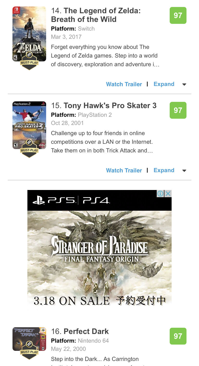 メタスコア見てみたらPS5版下駄履かせてんのにブレワイより低くなってたわ