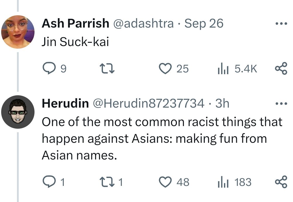 弥助擁護系リベラル黒人女性記者がゴーストオブツシマの男性主人公・境井仁の名前を尋ねるツイートに対する返答として、日本の名字である「境井」を「Suck(クソ)-kai」と揶揄するかたちで侮辱し差別