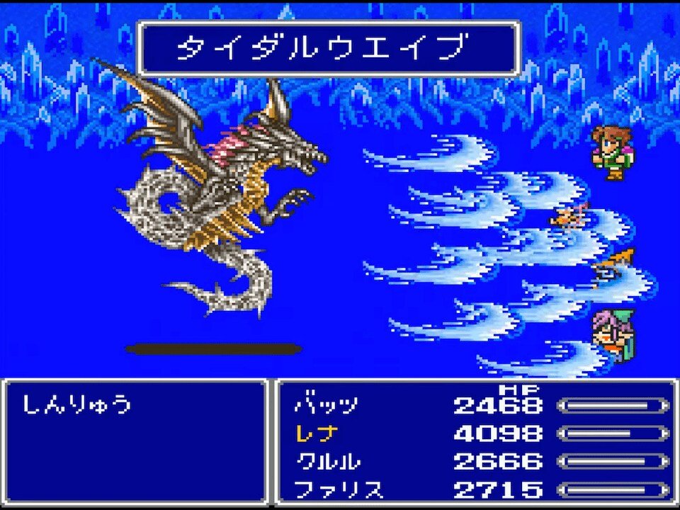 『ファイナルファンタジーV』の「しんりゅう」は、ラストダンジョンの宝箱を開けた瞬間にプレイヤーを絶望に突き落とす、アストスと同じく多くの初見プレイヤーを全滅させた隠しボスだ。宝箱を開けると「中からモンスターが!」というメッセージが表示され、突然戦闘が始まる。無警戒で挑んだプレイヤーはその瞬間、計り知れない衝撃を受けることになる。