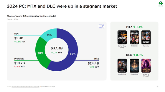 2021年以降、PC向けゲームは成長を続けており、投資調査会社Epyllionの報告書によると、2024年にはモバイル以外のゲーム売上高の53%を占めたという。コンソール向けゲームは47%だ。