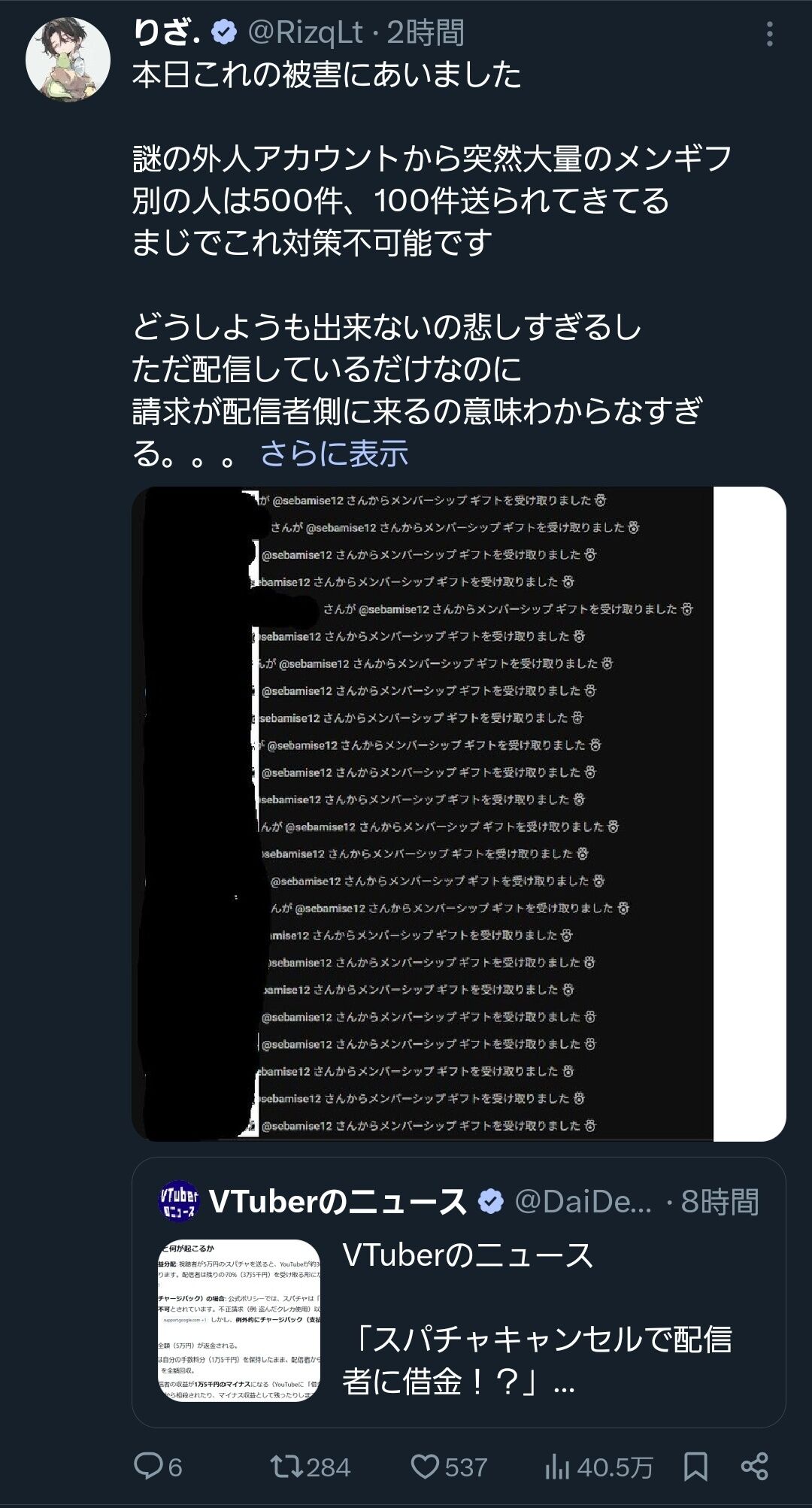 不審なアカウントから来たスパチャは拒否できる仕組みが有るべきだと思う