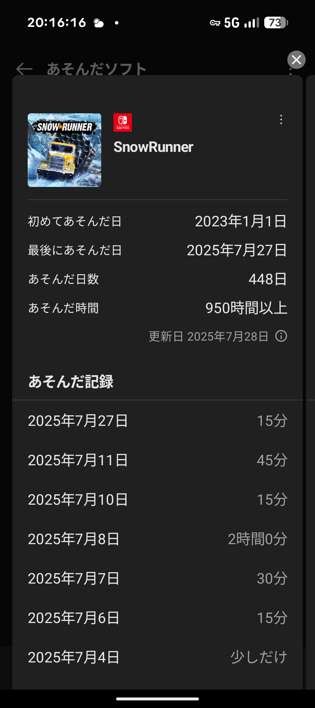 ストアアプリのあそんだソフト見たらブレワイ450時間、ゼノクロゼノブレ2ティアキン400時間、モンハン3G4G350時間、ライズ300時間だった